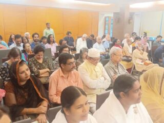 Radhika Sood Nayak, singer and vocalist, mesmerized the audience with two soulful songs that brought a profound silence over the hall. Roshani Shenazz spoke about the importance of good thoughts, good words, and good deeds. Father Gilbert De’lima emphasized the role of religion in countering communal violence, citing examples from Nagaland and Manipur, and called for religion to be used as a force for unity. Islamic scholar Mufti Yahya discussed the significance of family and relationships through the Islamic perspective. Swami Dayadipananda stressed recognizing the divine power within all of us, noting that in every religion there are those who may not believe in divine power but hold it through their experiences.