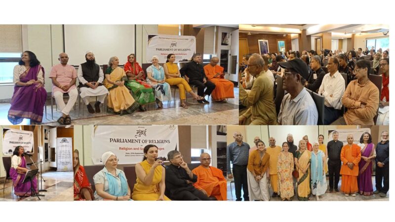 The second edition of the Mumbai Parliament of Religions took place on the morning of the 27th of September, 2025 Saturday at the Bah’ai Centre in Marine Lines, Mumbai. The Mumbai Parliament of Religions was organized jointly by the Inter-Religious Solidarity Council, The Centre for the Study of Society and Secularism and The Bah’ai Centre in Mumbai. The topic of this year’s parliament was “Religion and Social Challenges,” with speakers from different faiths and walks of life. The panel this year at the parliament consisted of Rajni Bakshi (Gandhian Scholar & Author), Dr. Surinder Kaur (Educationist), Prabhu Govind Das (Hare Krishna Spiritual Leader), Tahirih Mahija (Baháʼí Representative), Roshani Shenazz (Spiritual Author & Guide), Mufti Yahya (Islamic Scholar), Father Gilbert De’lima (Catholic Priest), and Swami Dayadipananda (Ramakrishna Mission Monk).