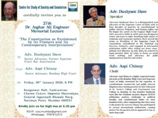 Centre for Study of Societyand Secularism invites you to the 17th Asghar Ali Engineer Memorial Lecture on the ‘Contribution of Muslim Women to Educational Institutions: The Case of Khwateen-E-Awwal of Jamia Millia Islamia’