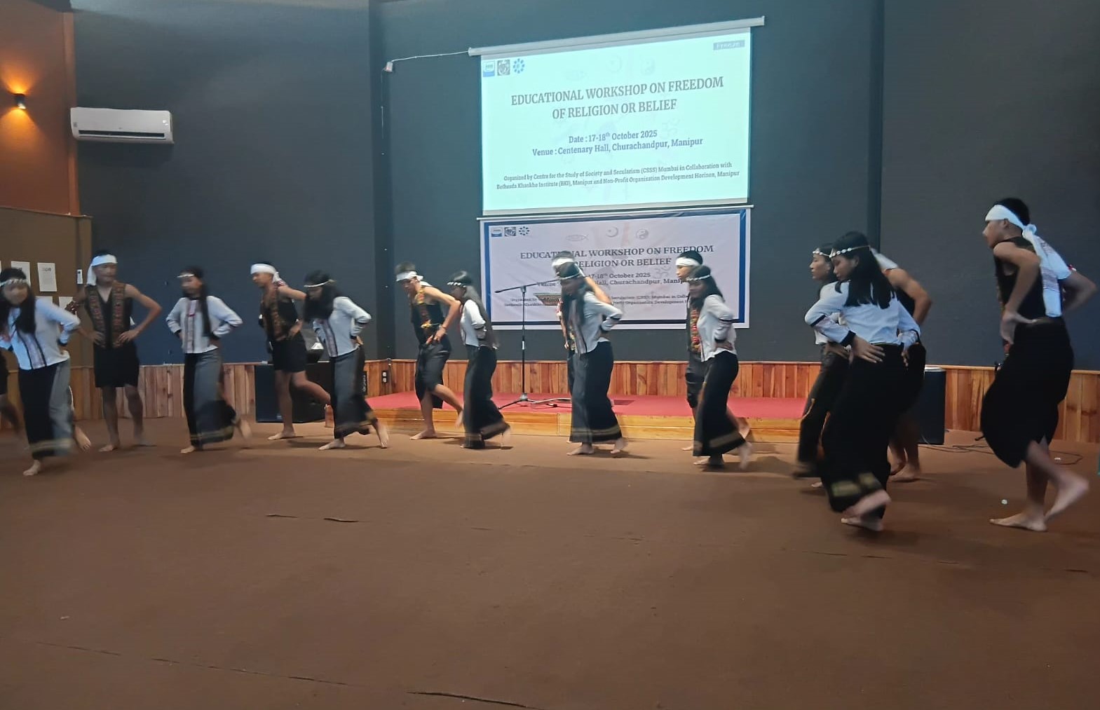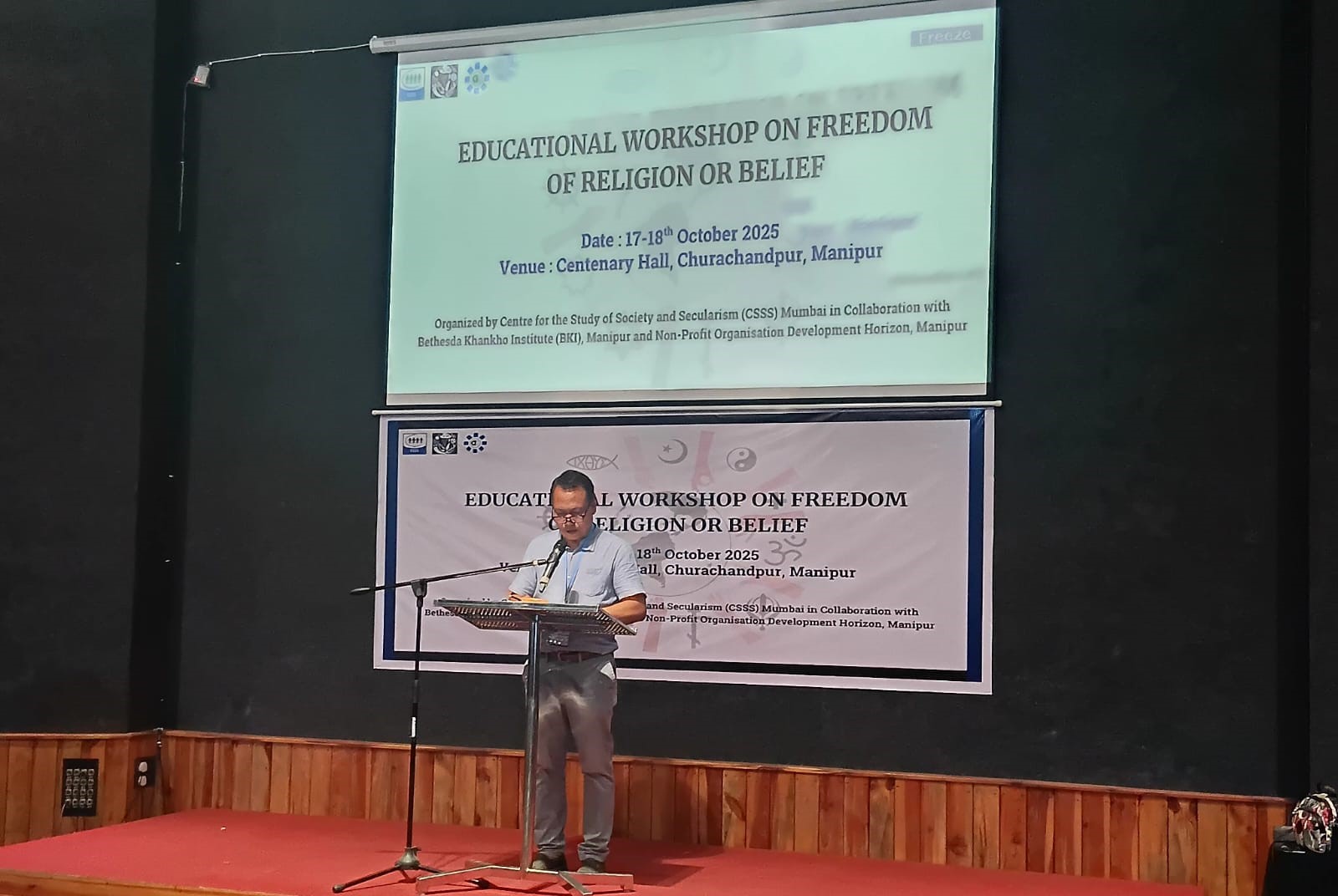 The Centre for Study of Society and Secularism (CSSS), in collaboration with Bethesda Khankho Institute (BKI) and Development Horizon organized a two-day workshop on the theme “Freedom of Religion or Belief (FoRB)” in Churachandpur, Manipur. The workshop brought together twelve participants representing three districts of Manipur—Churachandpur, Kangpokpi, and Tengnoupal. The participants comprised student leaders, youth engaged in civil society organizations, and doctoral researchers. The inaugural session commenced with a traditional folk dance elegantly performed by students from Bethesda Institute.